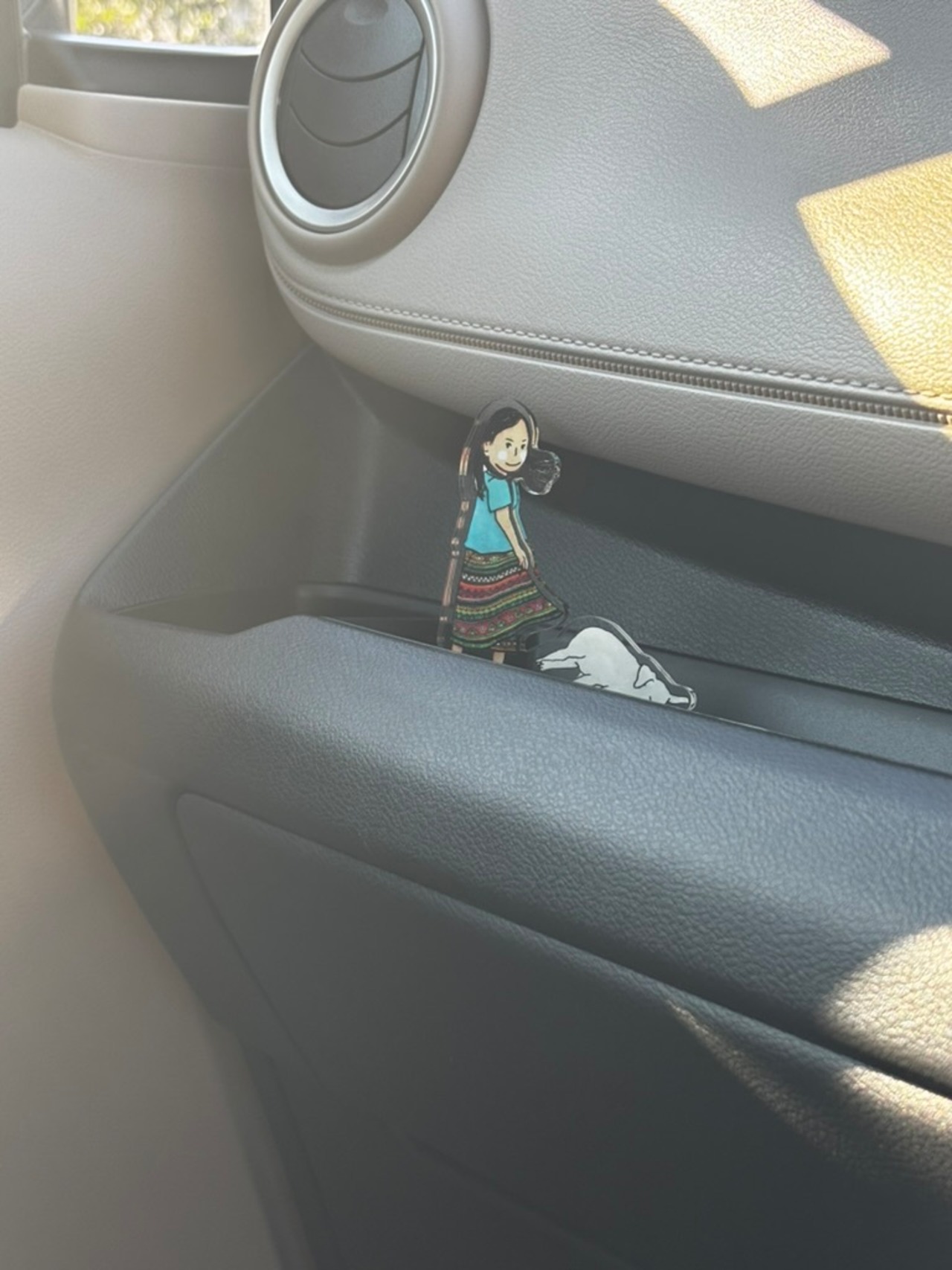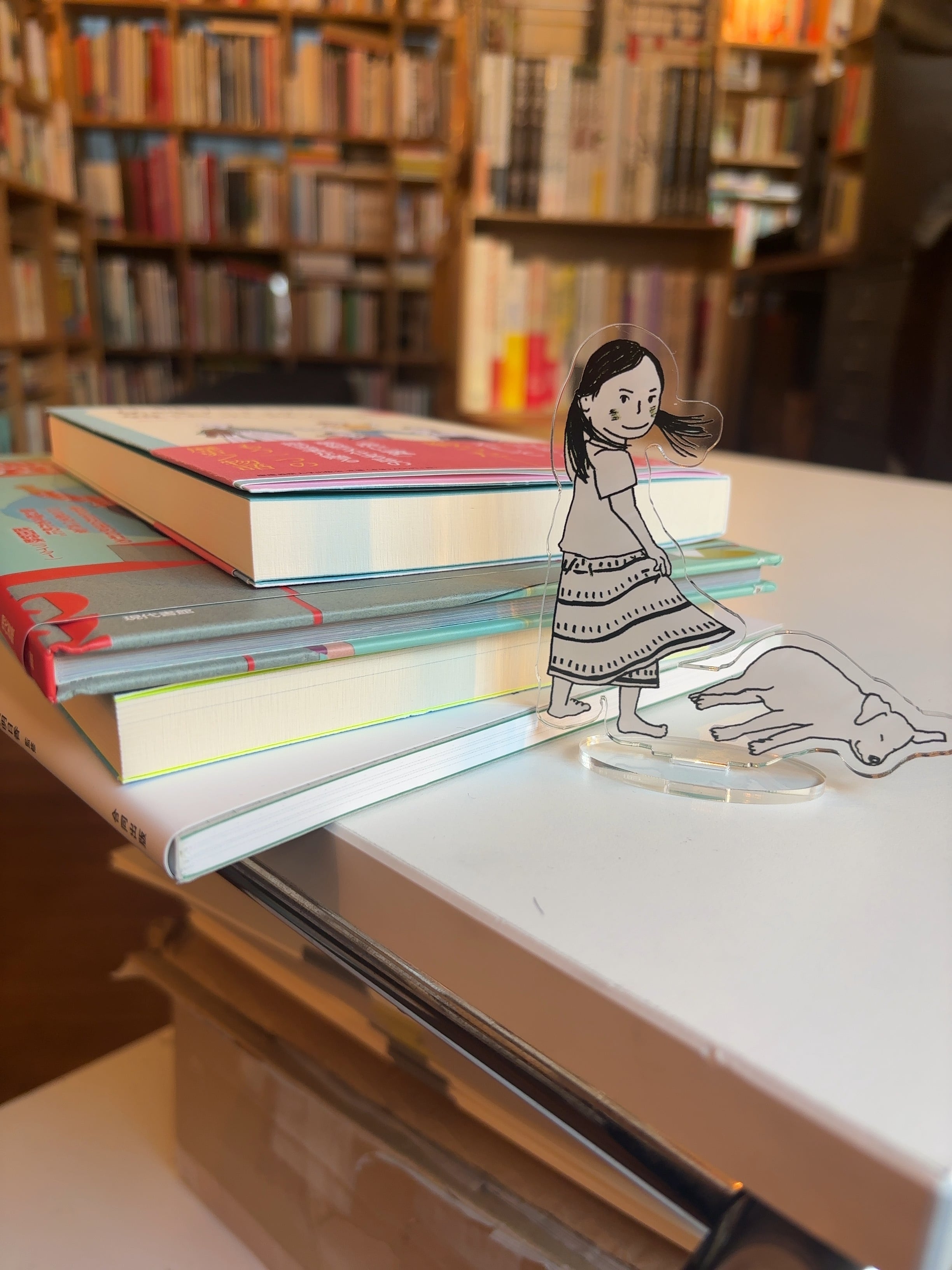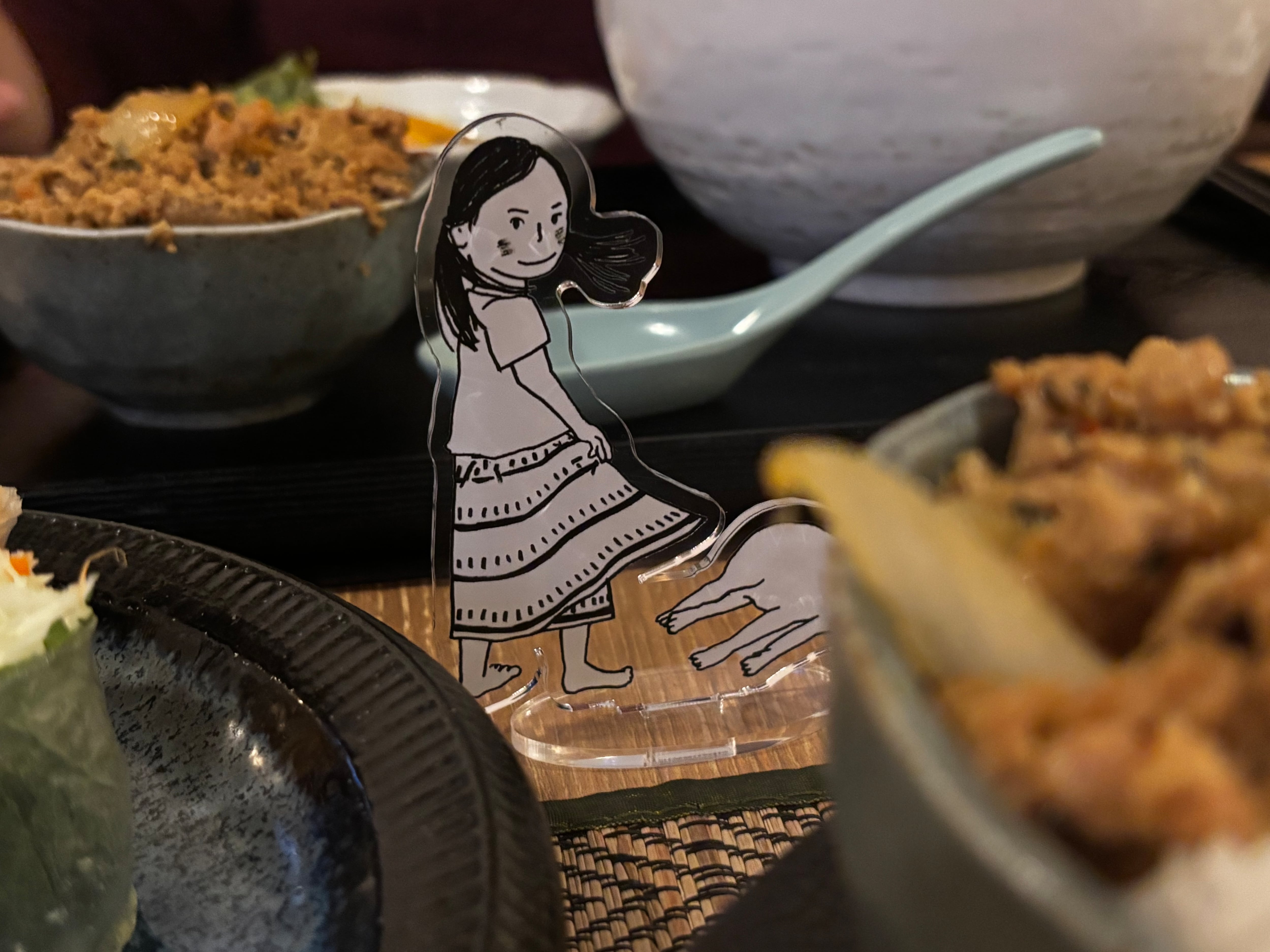 アトゥトゥミャンマーのロゴ、アトゥトゥガール&ドッグ(イラスト 金井真紀さん)のアクリルスタンドでミャンマー市民、ミャンマールーツのともだちへの支援ができます。